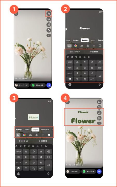 特別なアプリをダウンロードしなくても、Instagram(インスタグラム)内の機能を使えばすぐにおしゃれな文字を入れることができます。